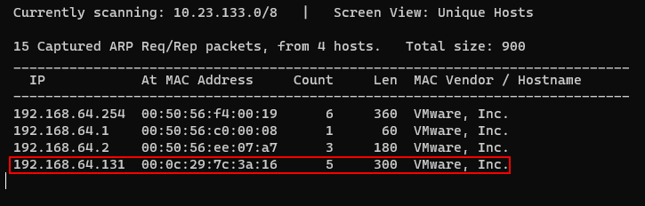 It shows that the machien's IP is 192.168.64.131. The result of the port scan for this IP is as follows.